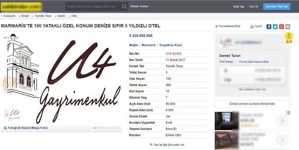 Akın ipek'in Marmaris'teki oteli internetten satışa çıktı