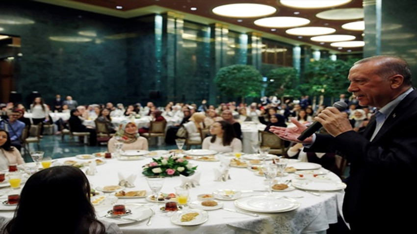 Emine Erdoğan'ın sahur daveti üzerine Cumhurbaşkanlığı Külliyesi'ne gelen gençlere sürpriz yapan Cumhurbaşkanı Recep Tayyip Erdoğan da programa katıldı.