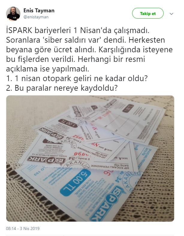 Fiş isteyenlere “Sistem çöktü” denerek dip koçanla bilet verildiği belirtildi. Konuya ilişkin İSPARK henüz resmi bir açıklama yapmadı. Vatandaşlar sosyal medyada, "Bu paralar nereye kaydoldu?" diye sordu.