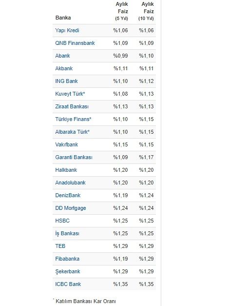 Konut kredisi faiz oranları: