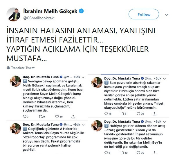 Bu ifadelerin ardından Melih Gökçek de Tuna’ya yanıt verdi. Gökçek, “İnsanın hatasını anlaması, yanlışını itiraf etmesi fazilettir... Yaptığın açıklama için teşekkürler Mustafa...” diye yazdı.